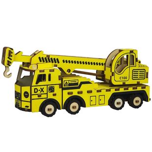 益智手工diy木制拼图拼板挖掘机木质儿童立体拼装 模型工程车玩具