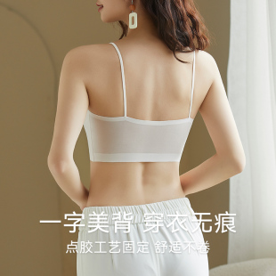 无痕美背抹胸内衣女小胸聚拢可外漏细肩带一体固定杯背心式 文胸罩