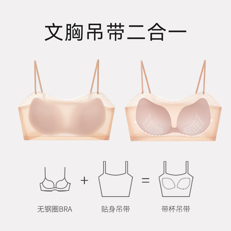 蕉树吊带内搭外穿带胸垫薄款 小胸聚拢裸感固定杯防下垂防滑抹胸