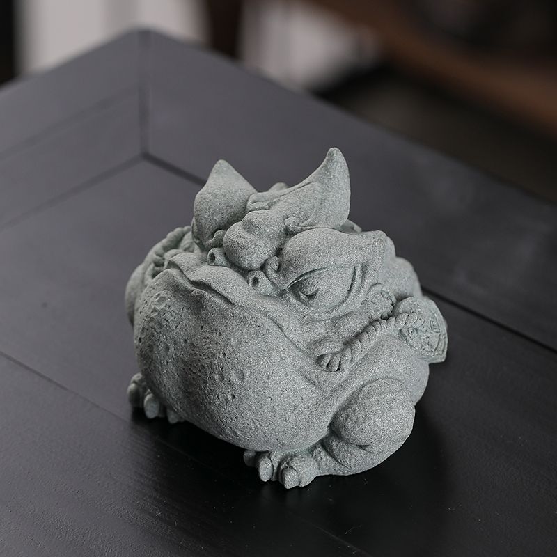 中式 饰品茶玩茶宠精品可养 金蟾招财青砂石摆件创意家居客厅桌面装