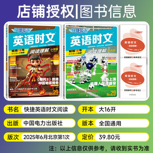 2026快捷英语时文阅读小学版 社 小升初第29期28期英语阅读理解与完型填空时事热点单词短语句子英语专项训练五六年级适用电力出版