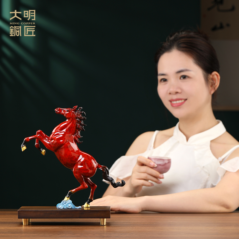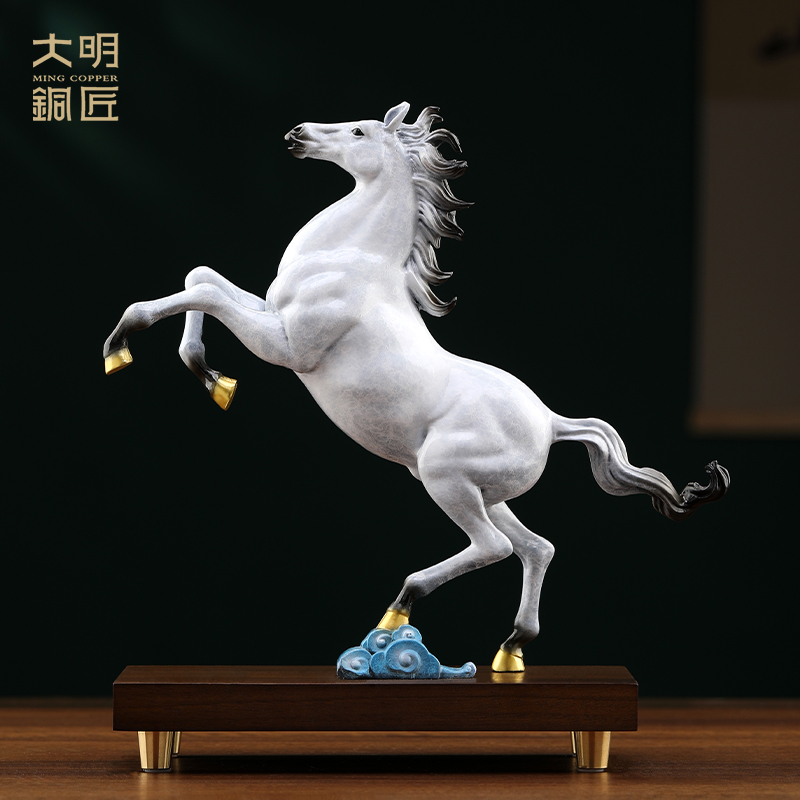 大明铜匠马踏祥云生肖马摆件客厅玄关办公室酒柜装 饰乔迁商务礼品