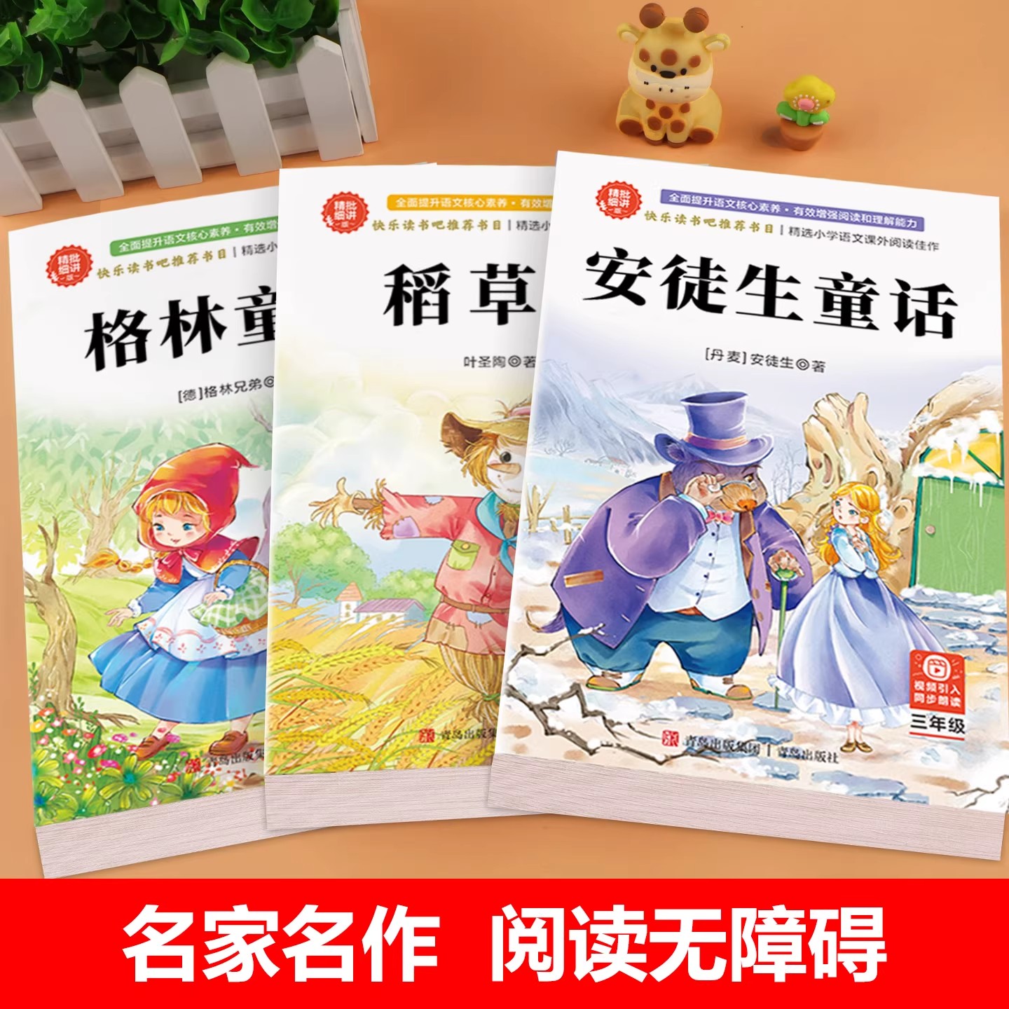 全套3册快乐读书吧二三五年级上册三上彩图注音版 格林童话安徒生童话稻草人语文阅读必读课外书中国古代寓言故事大全克雷洛夫寓言
