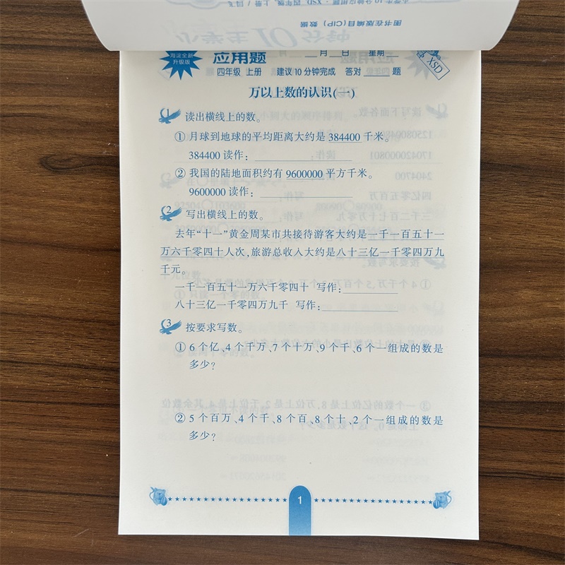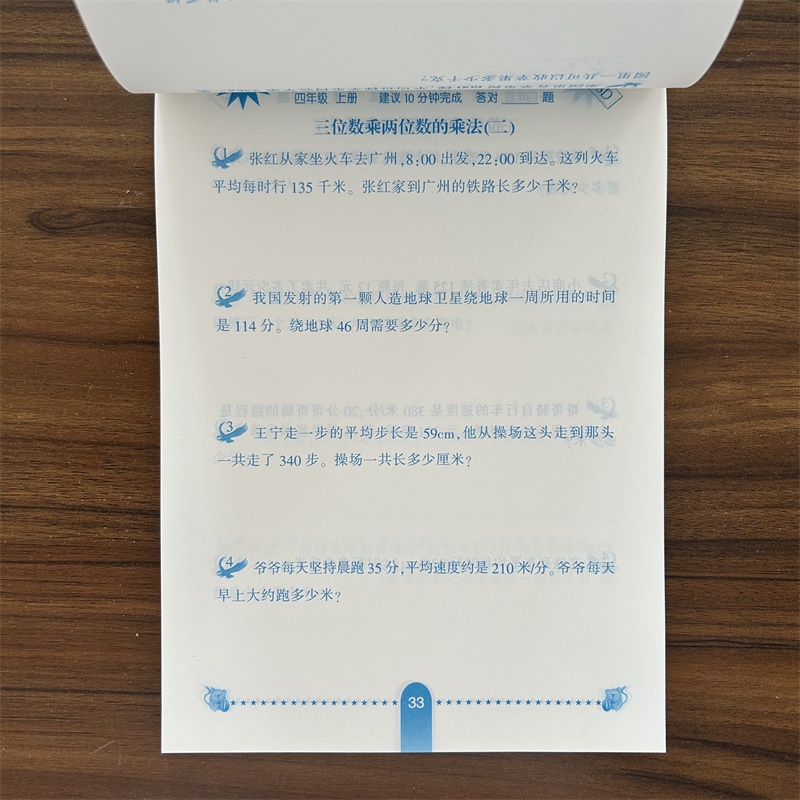 2024秋小学生四年级上册每天10分钟应用题西师版 同步天天练数学思维训练练习册口算 天天练数学题测试4年级上册XS版