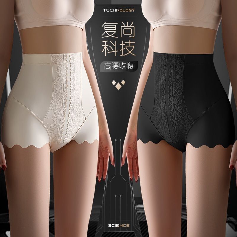 透气产后收小肚内裤 女大码 高腰提臀桑蚕丝底裆塑形无痕收腹裤 夏季