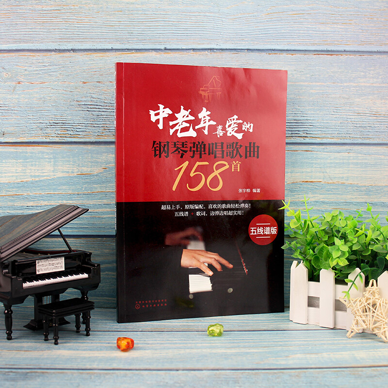 中老年喜爱 热歌经典 钢琴弹唱歌曲158首 趣味钢琴曲选老歌钢琴弹唱基础练习曲教材教程曲谱书籍 流行钢琴弹唱曲谱书 五线谱版 正版