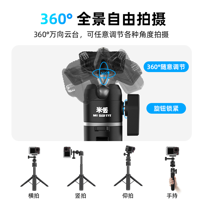 米丢适用大疆action5pro 4手持杆运动相机快拆自拍杆单反迷你360acepro2三脚架pocket3云台支架gopro延长杆