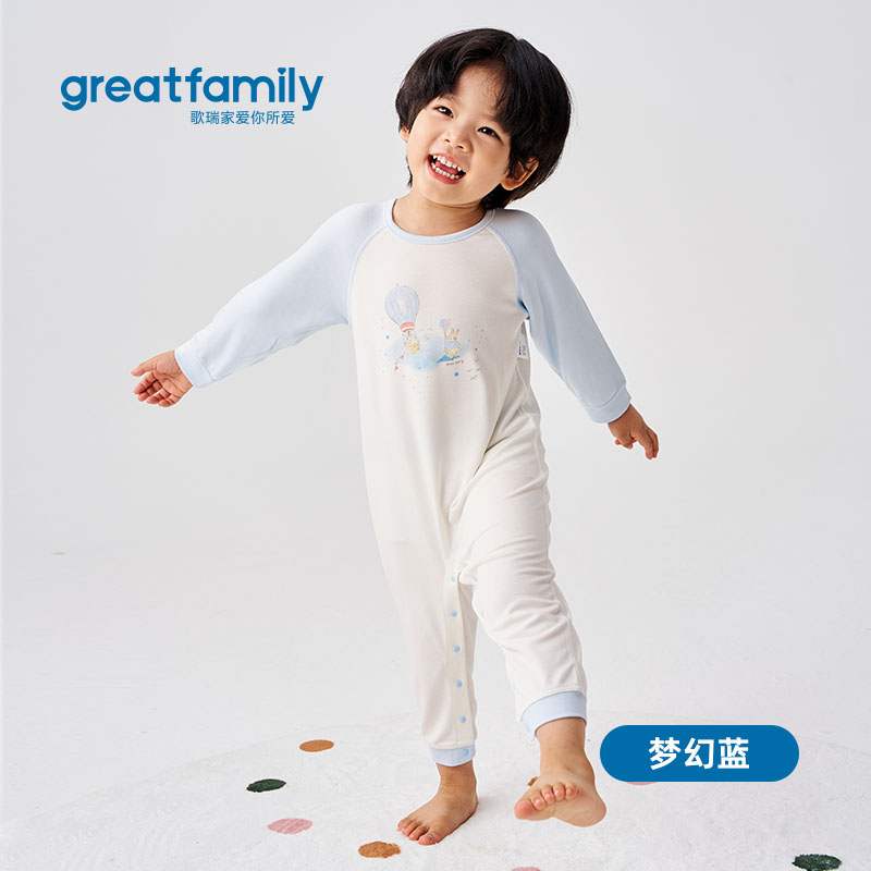 歌瑞家儿童连体衣2025秋新款 哈衣 儿童百搭圆领爬服休闲宽松长袖