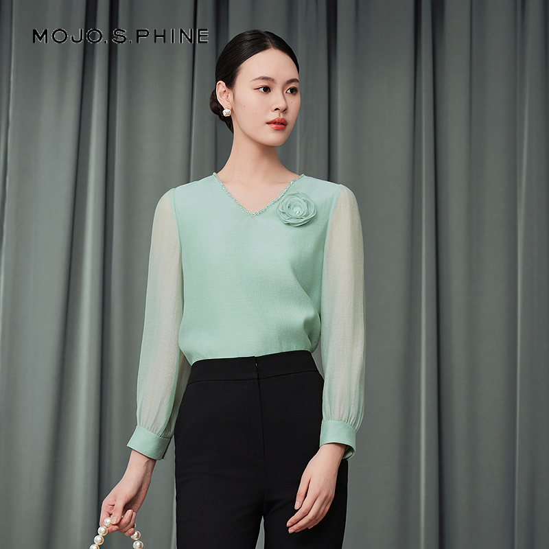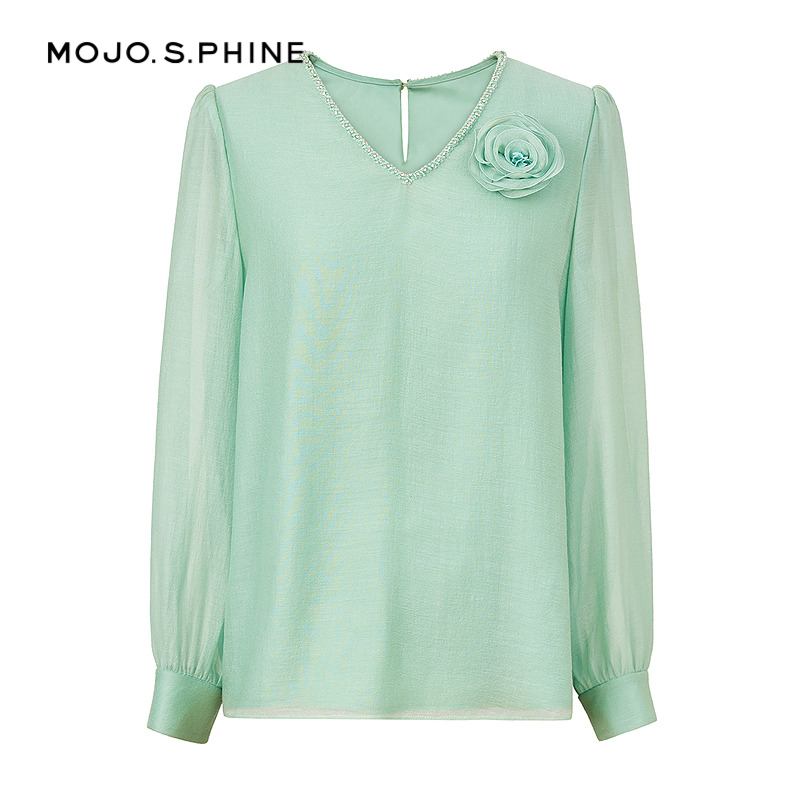 海澜之家商务通勤翻领长袖 收腰职业白衬衣女装 正装 秋新款 衬衫 HLA