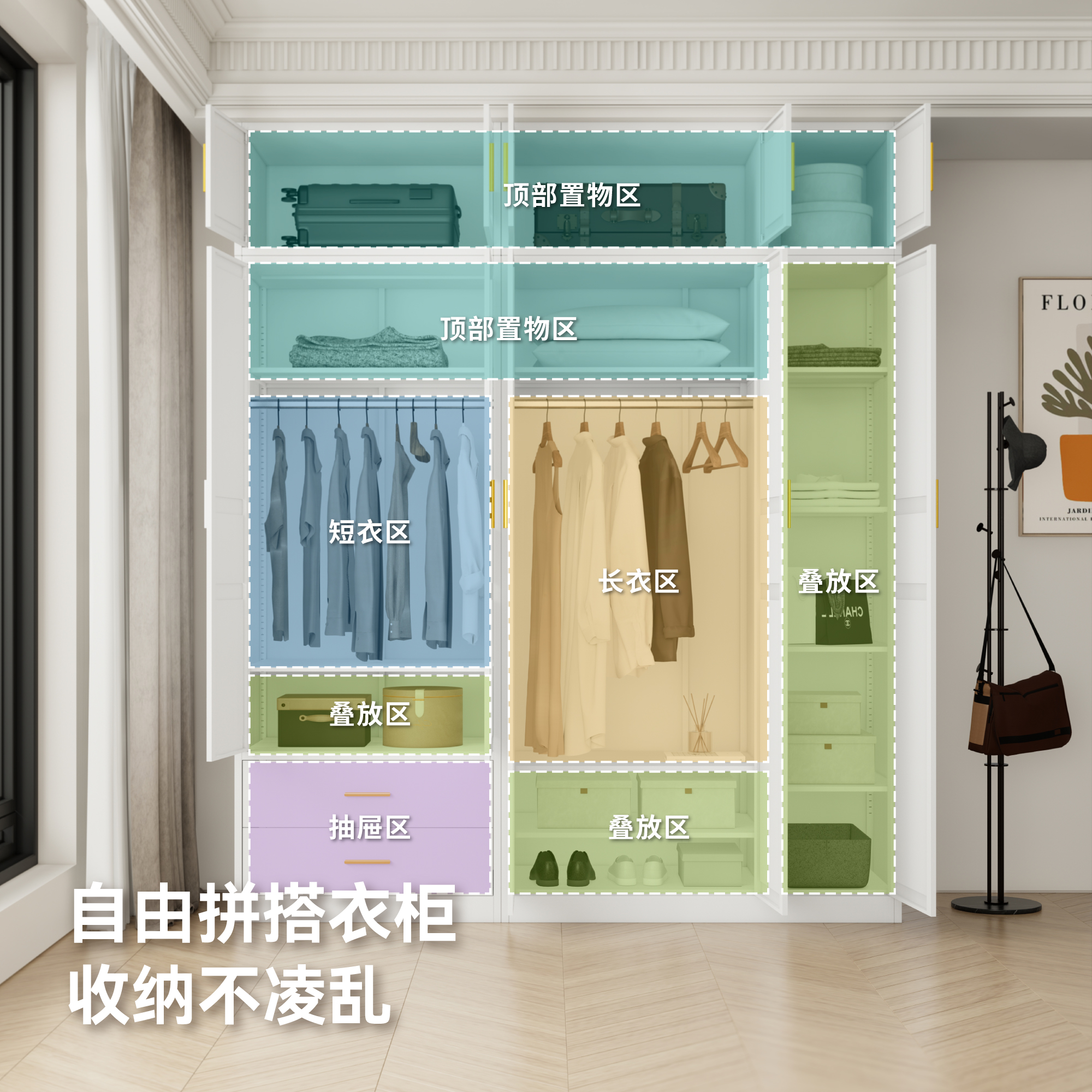 无甲醛衣柜钢制自由组合柜三门储物家用卧室欧式 简约现代铁柜衣柜