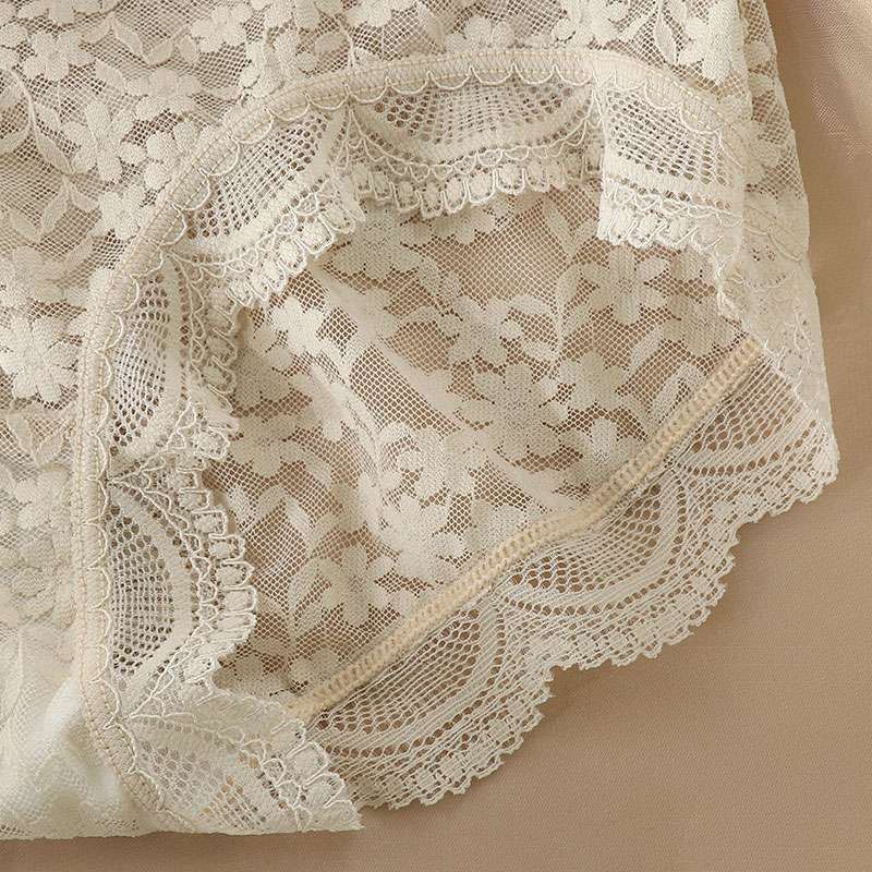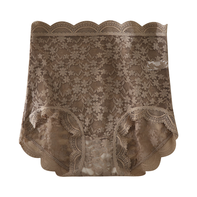 轻薄百搭少女士全纯棉透气底裆三角裤 高腰收腹蕾丝内裤 女唯美法式