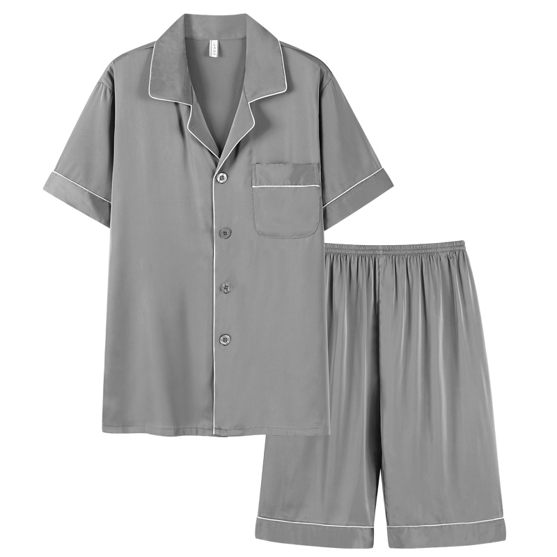 冰丝短袖 夏季 短裤 夏天家居服男仿真丝薄款 2025年新款 套装 睡衣男士