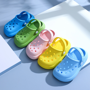 儿童洞洞鞋 男女孩休闲纯色宝宝轻便软底防滑沙滩透气花园凉拖 夏季