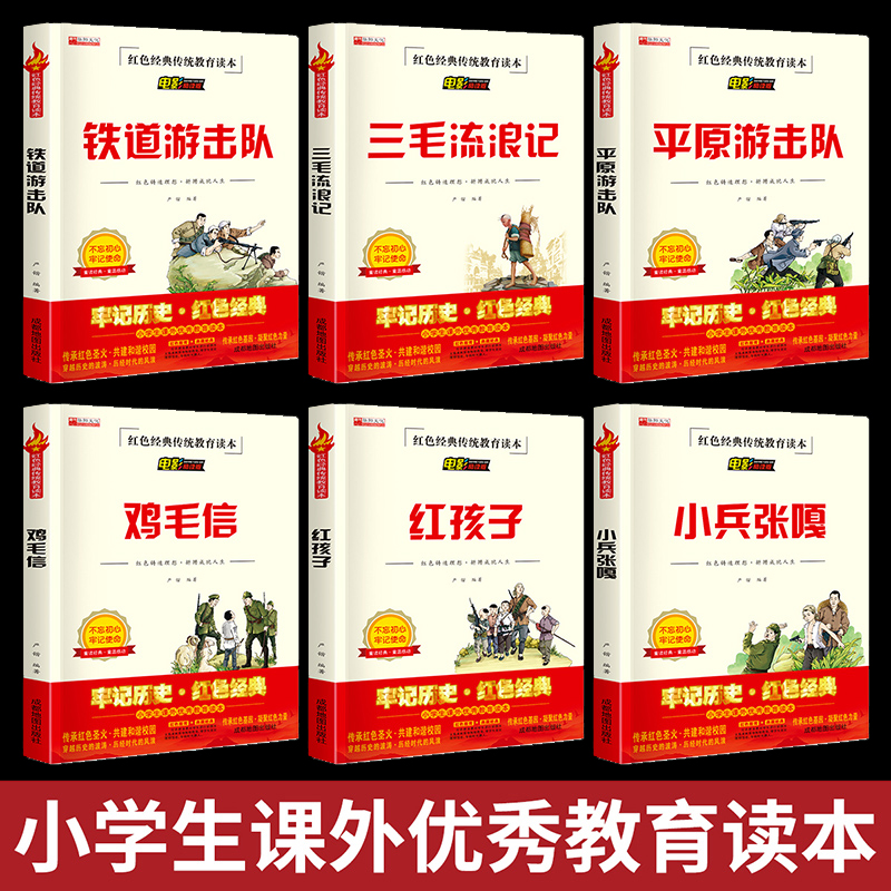 全套6册红色经典 书籍小学生一二三年级儿童抗日革命英雄故事书小兵张嘎平原铁道游击队鸡毛信红孩子三毛流浪记阅读教育电影阅读版