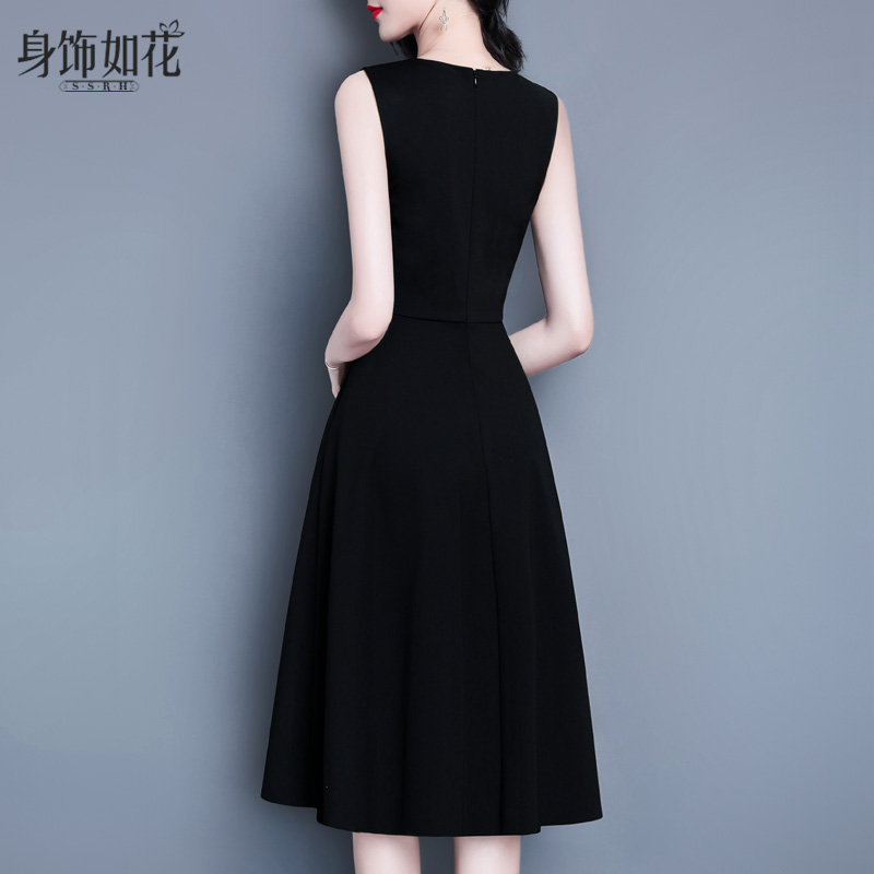 气质显瘦a字连衣裙 中长款 棉绸连衣裙女夏2025新款 人造棉纯色短袖