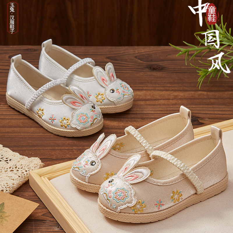 手工宝宝儿童绣花鞋 老北京布鞋 子春秋兔子可爱古风古装 女童汉服鞋