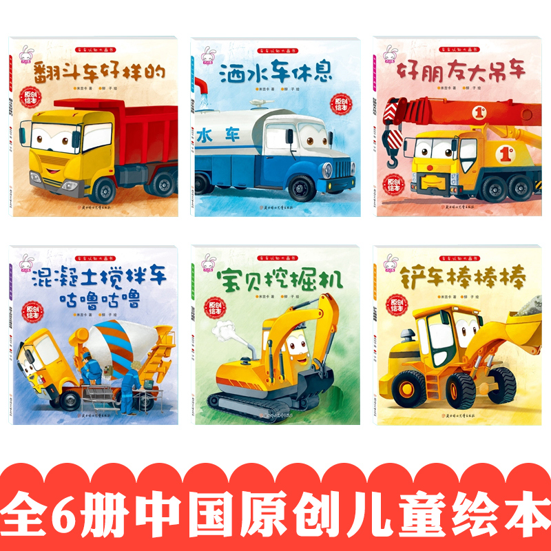 6岁幼儿童睡前故事幼儿图书0 儿童读物汽车绘本车车认知大画书 宝宝书籍幼儿童绘本故事书0 全套6册儿童工程车故事书