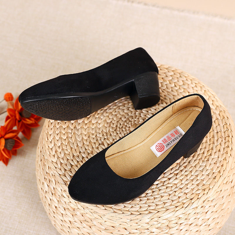 女春季 中跟单鞋 新款 圆头粗跟黑色前台礼仪鞋 纯色工作鞋 老北京布鞋