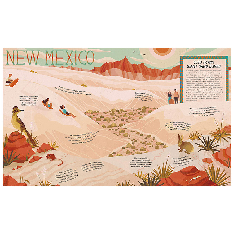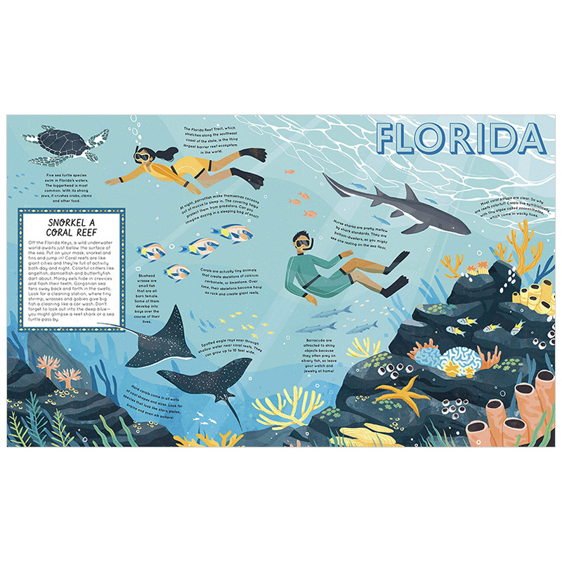少儿英语绘本 旅游故事艺术绘本 小学英语阅读 儿童英语读物 善本图书 在美国50个州 12岁少儿阅读 50次冒险
