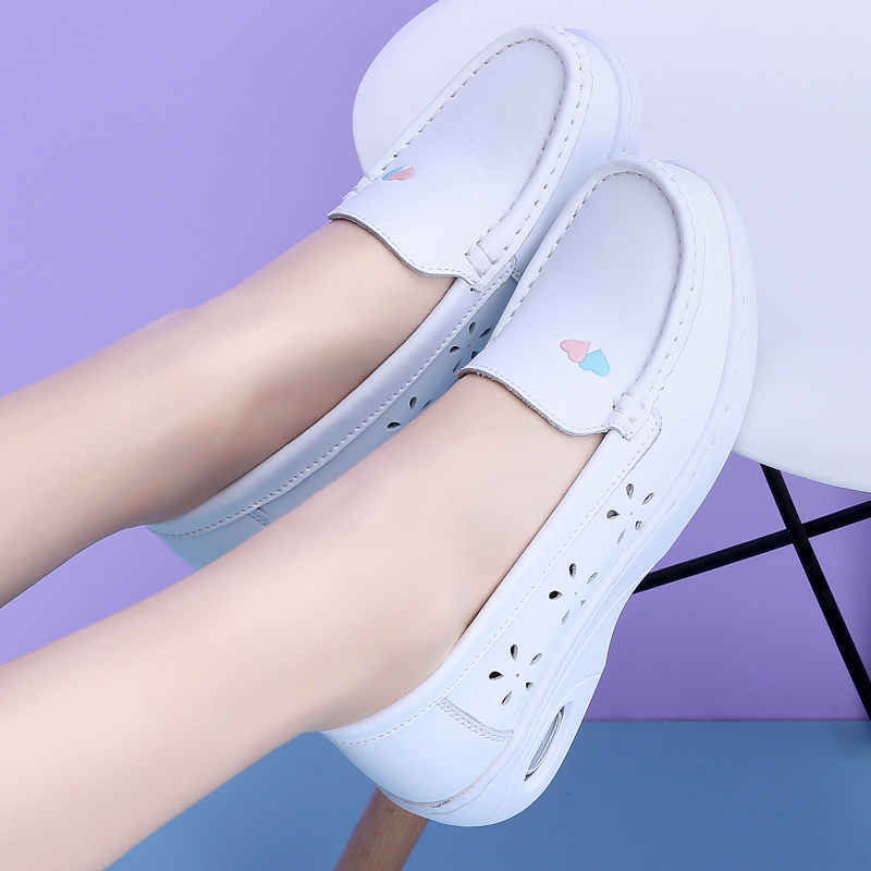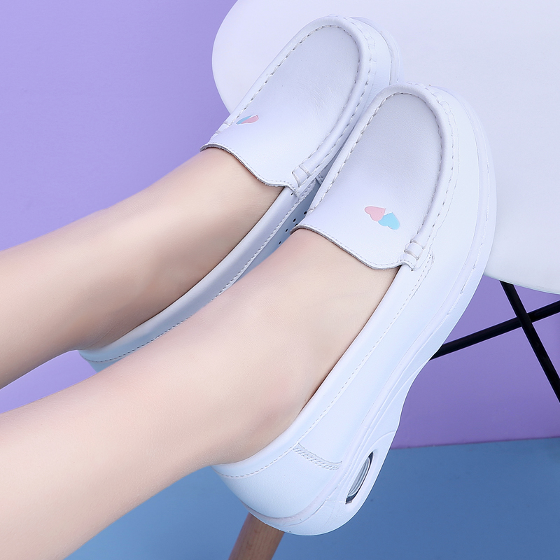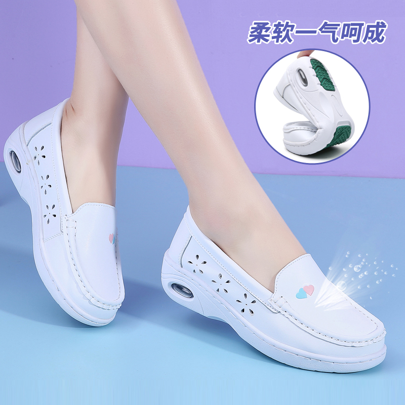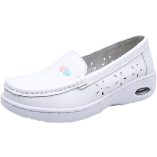 女软底真皮透气不累脚厚底增高气垫防臭平底春秋医护鞋 夏季 护士鞋