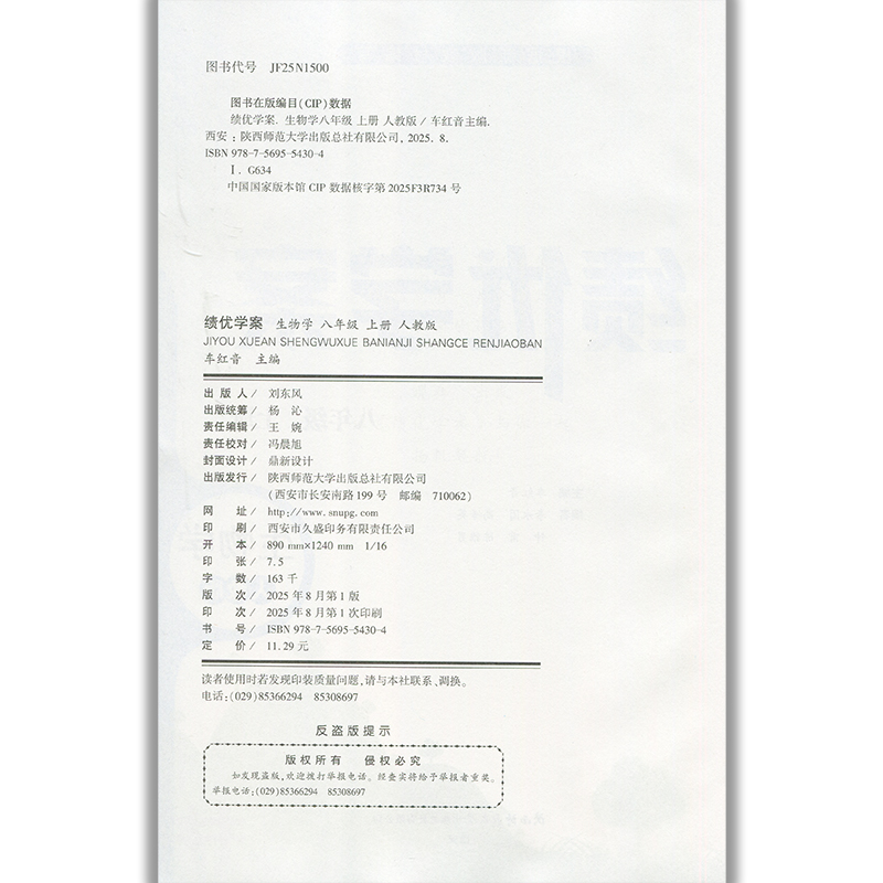 初中8 2025绩优学案生物学八年级上册配人教版 初二上册生物教辅导书 社 八年级上册生物同步练习册资料书 RJ人民教育出版