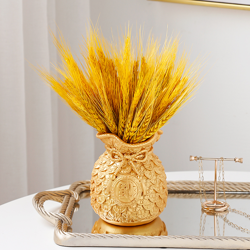 黄金麦穗干花花瓶摆件客厅桌面摆设金色鹿装 饰旺财开业大麦花束