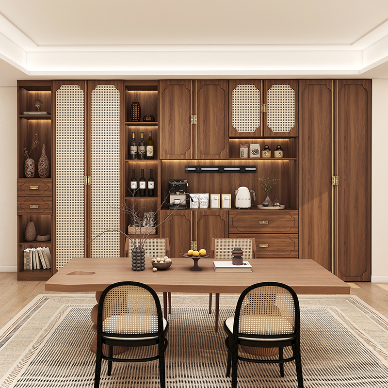 实木生态板酒柜靠墙客厅置物展示柜商用酒架2024年新款 家用新中式