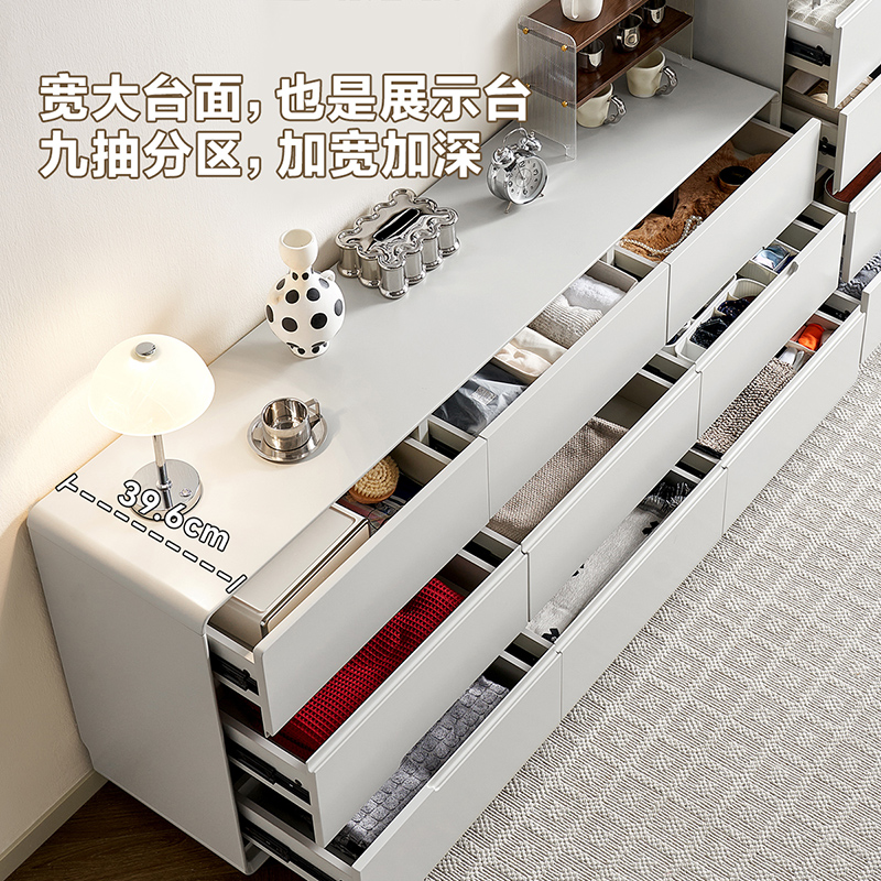 三梦简约实木斗柜卧室床尾置物柜奶油储物柜客厅靠墙抽屉烤漆柜子