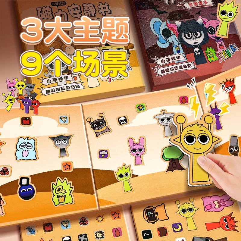 节奏盒子磁力安静书手工sprunki玩具免裁剪贴纸书换装 磁铁音乐盒