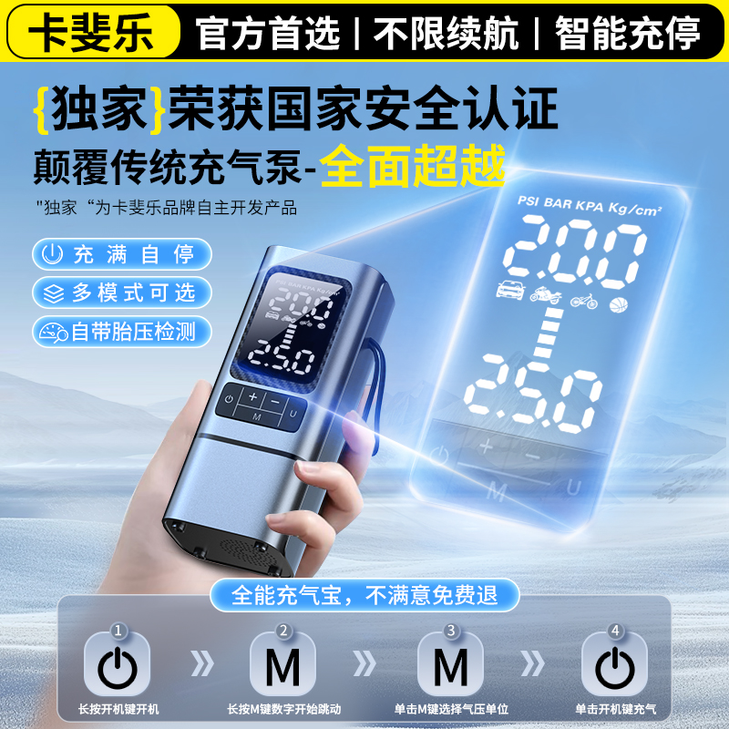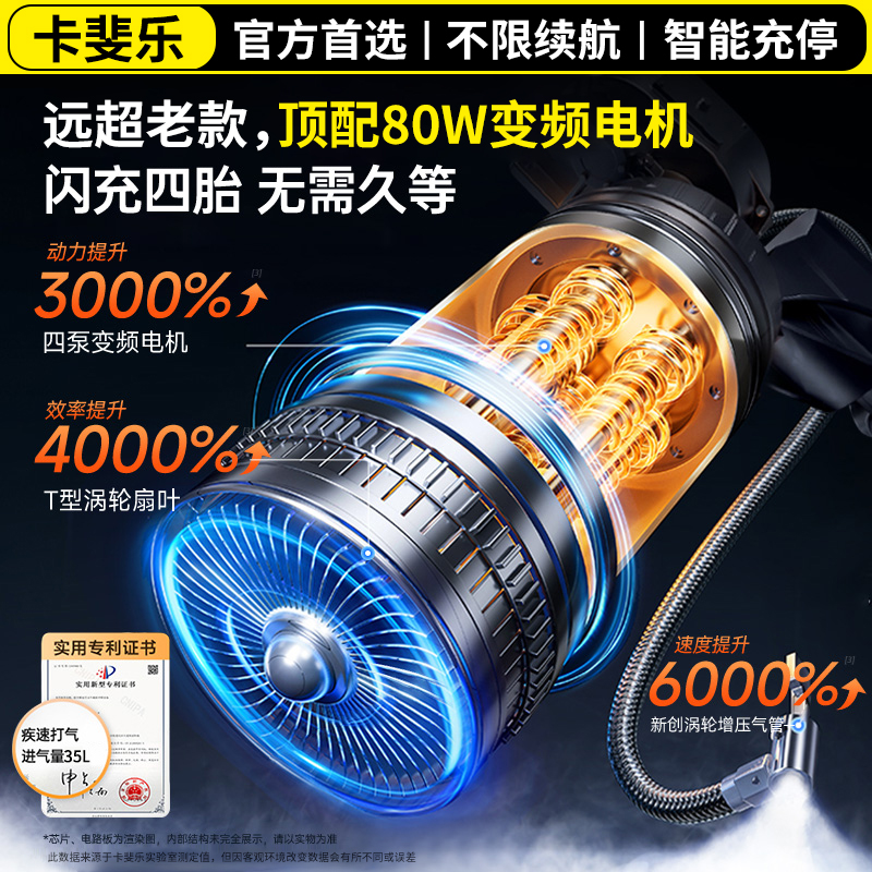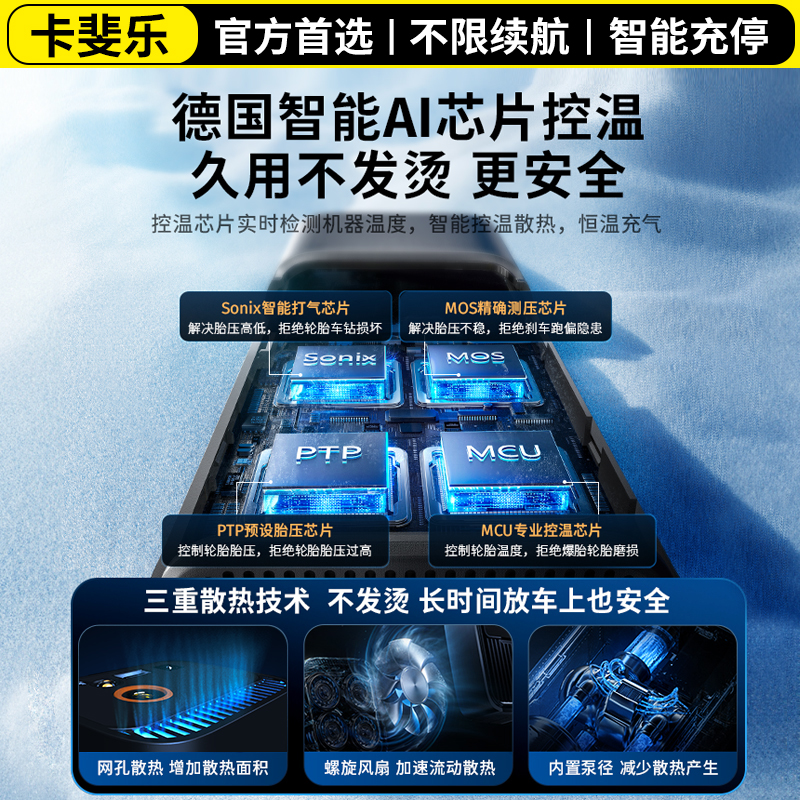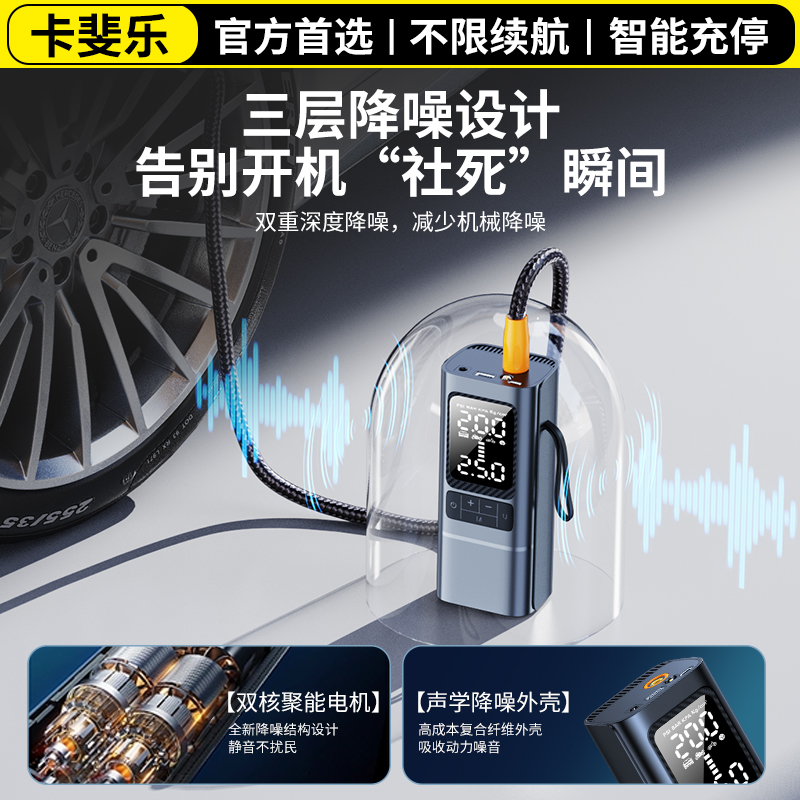 卡斐乐车载无线充气泵汽车用便携式 电动打气筒轿车轮胎测胎压高压