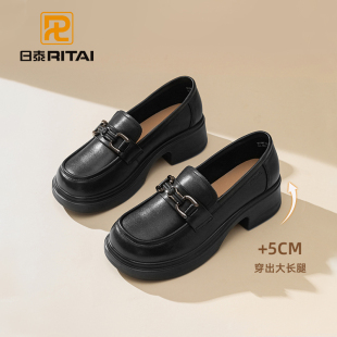 黑色小皮鞋 日泰头层牛皮厚底乐福鞋 英伦真皮休闲单鞋 2025新款 女款