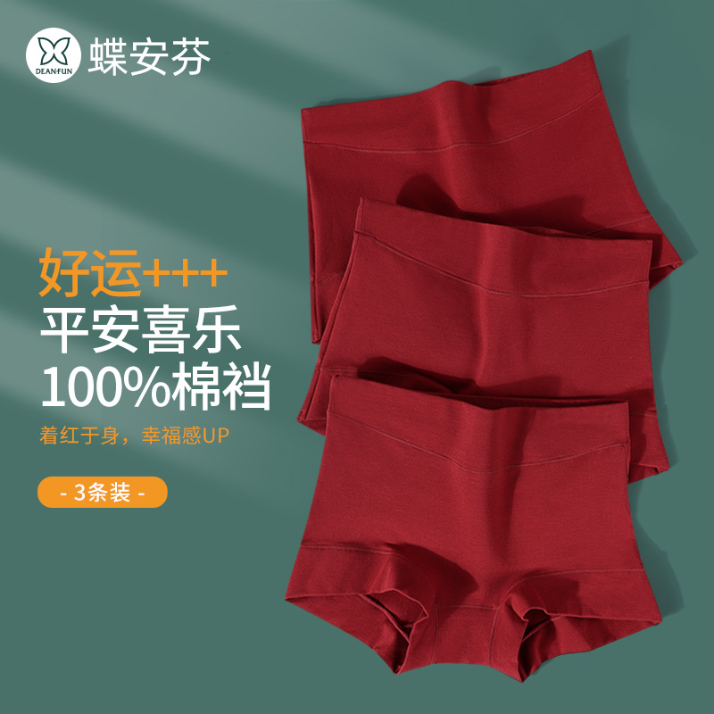 高腰收腹女生四角平角安全裤 红色内裤 女士纯棉抗菌全棉裆2025新款