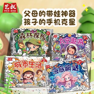 创意描摹涂色本森林太空城市海底让孩子放下手机DIY涂鸦绘本4大主题动物海洋男孩女孩漫画线稿8开尺寸超大拉页益智手绘本 全4册