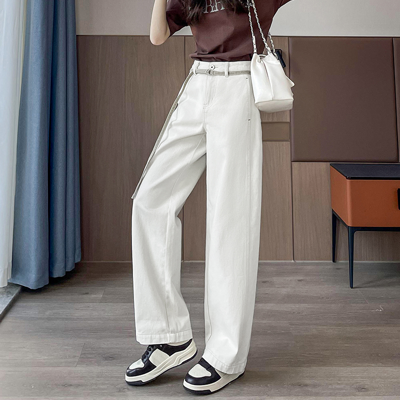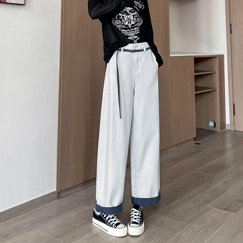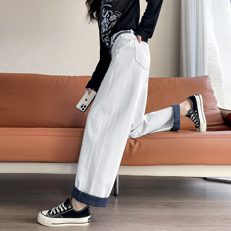 高腰宽松显瘦百搭卷边直筒拖地长裤 女春秋2025新款 阔腿牛仔裤 窄版