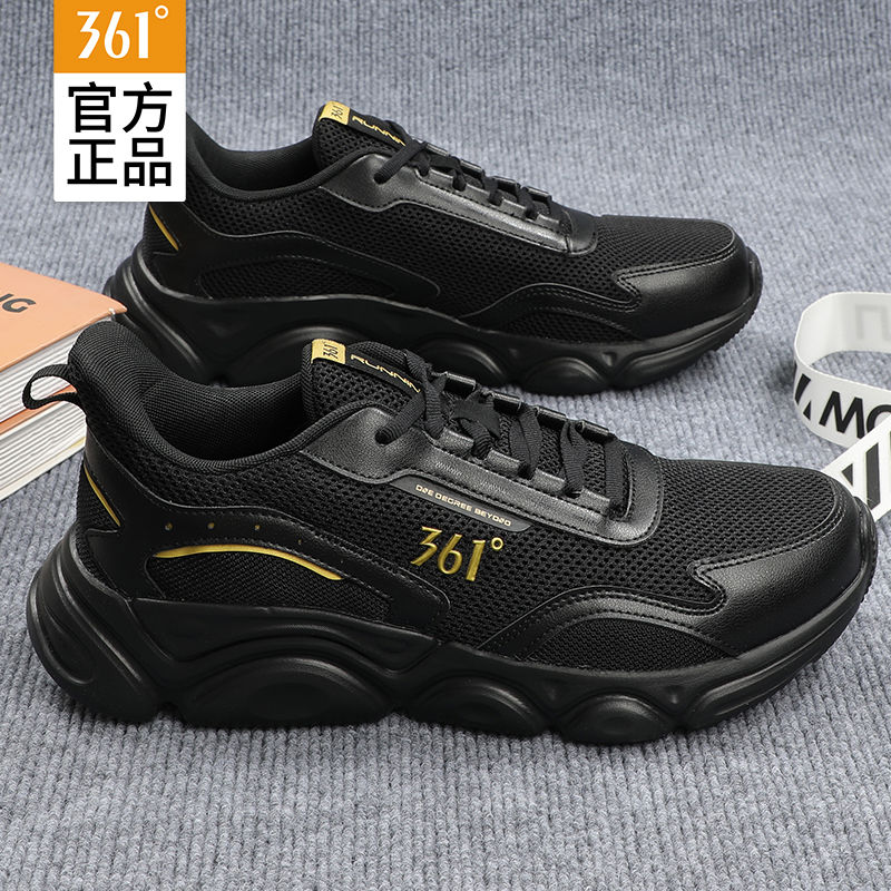 男鞋 网面透气黑色耐磨鞋 2025春季 缓震软底跑步鞋 子 新款 361运动鞋