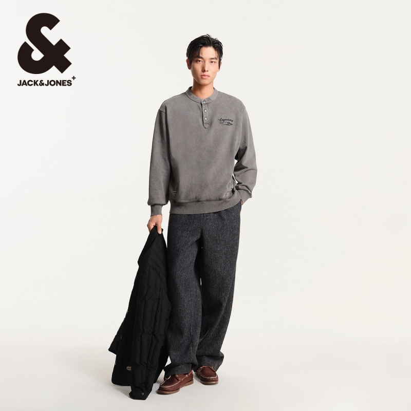 略宽松字母印花亨利领卫衣男装 杰克琼斯冬季 新款