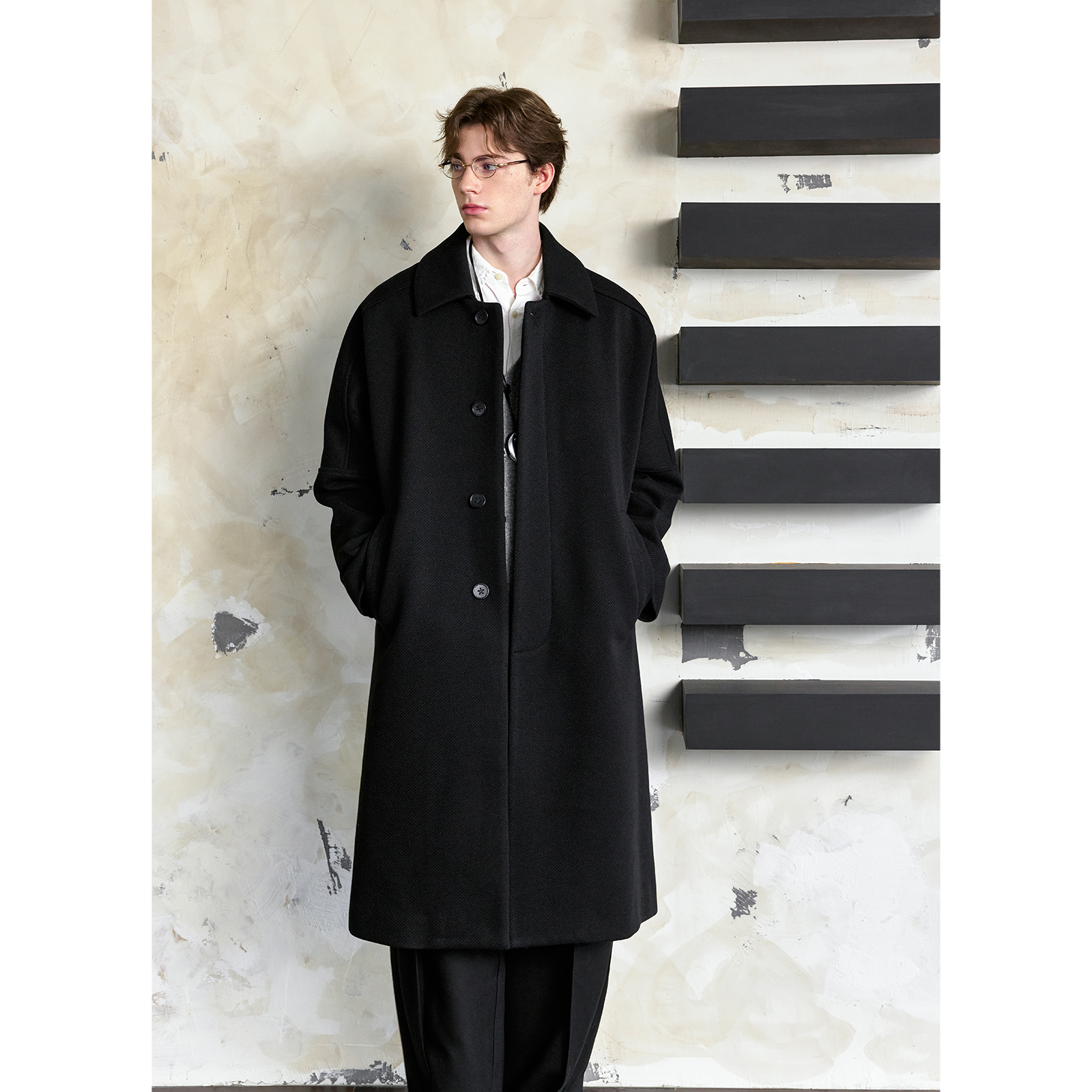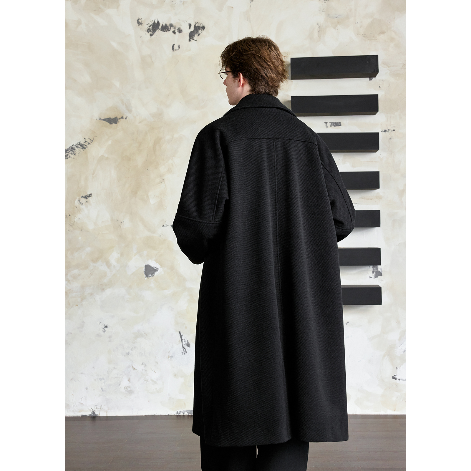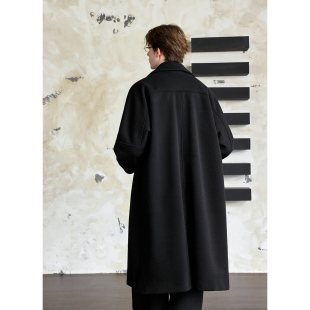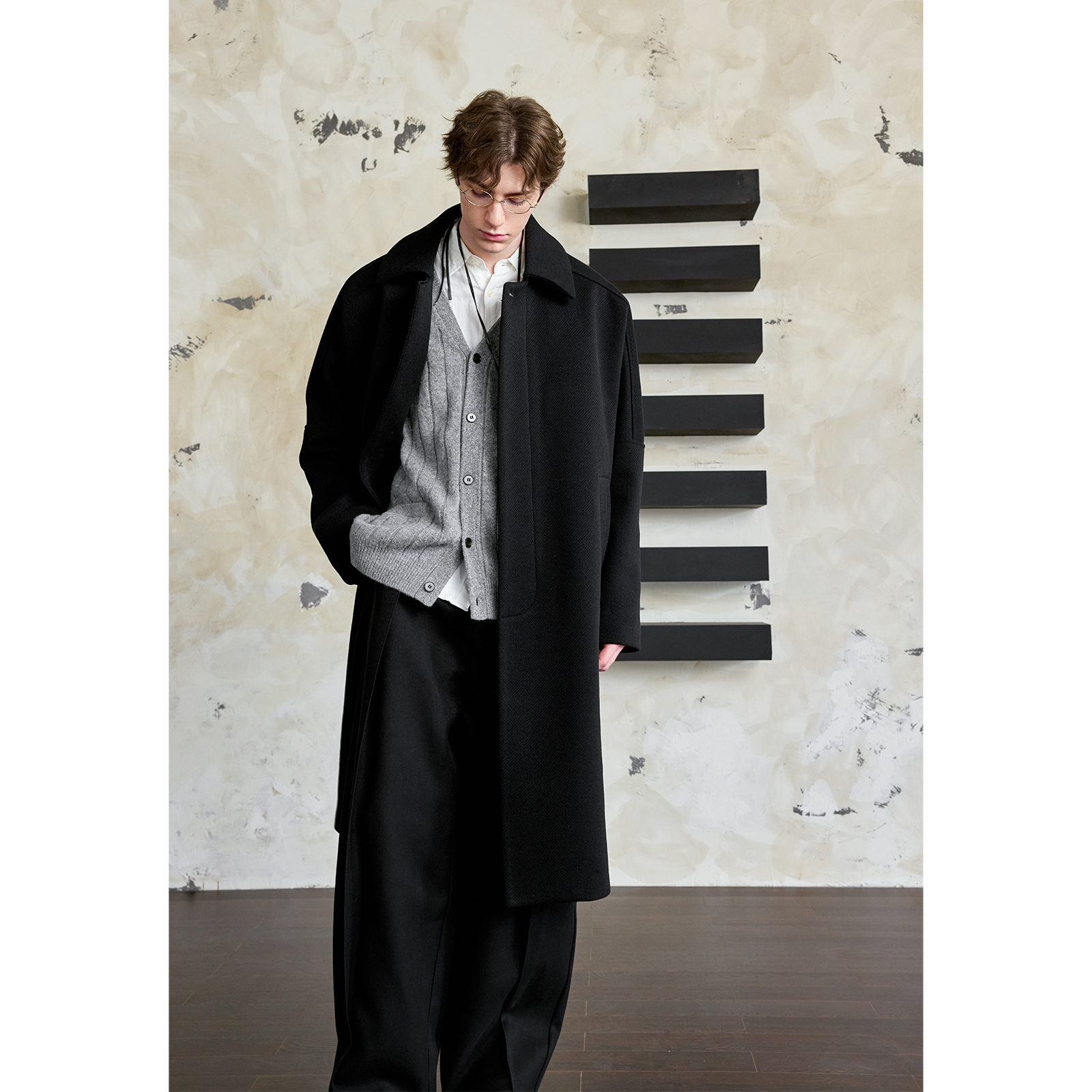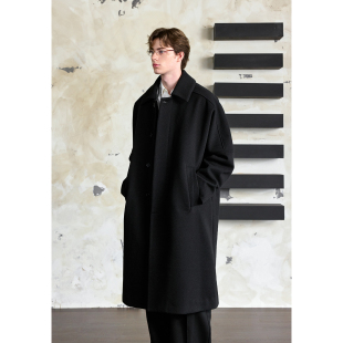 过膝无羊绒呢子风衣外套韩版 毛呢大衣男中长款 宽松落肩 新款 秋冬季