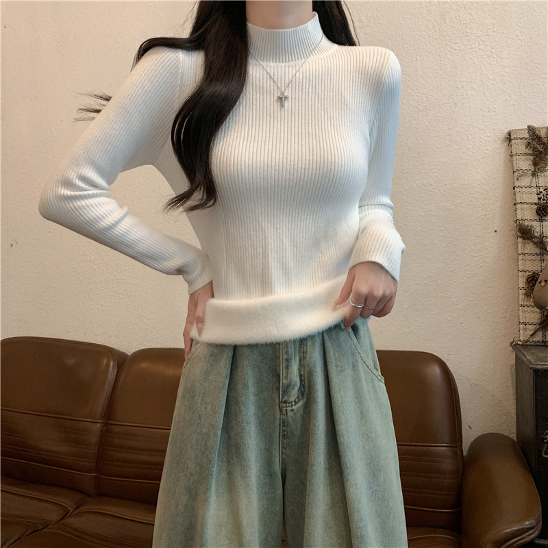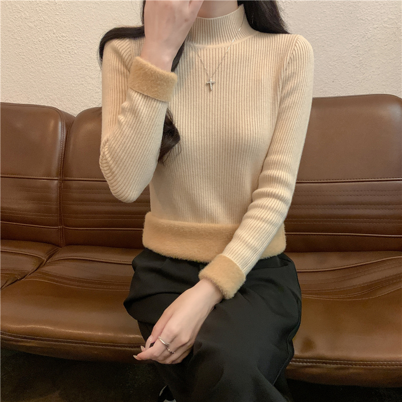 上衣 打底针织衫 黑色毛衣女秋冬半高领修身 紧身加厚一体绒内搭长袖