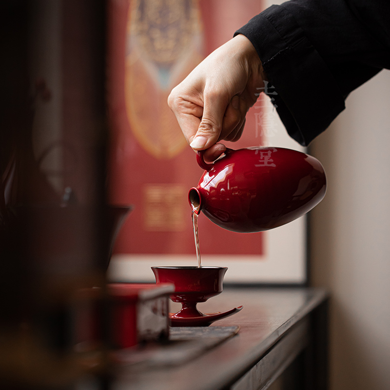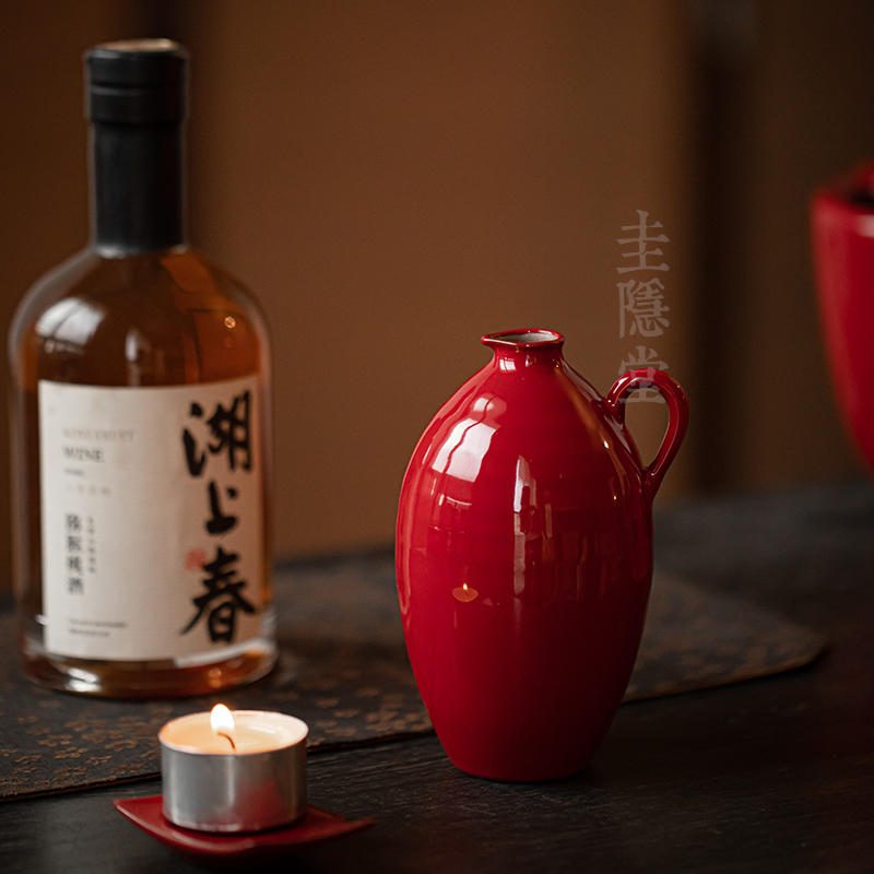 圭隐堂新中式 故宫红陶瓷酒具分酒器醒酒器白酒器清酒壶家用摆件
