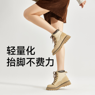 加绒靴子美拉德 冬季 达芙妮堆堆短靴女2025新款 秋冬厚底马丁靴女款