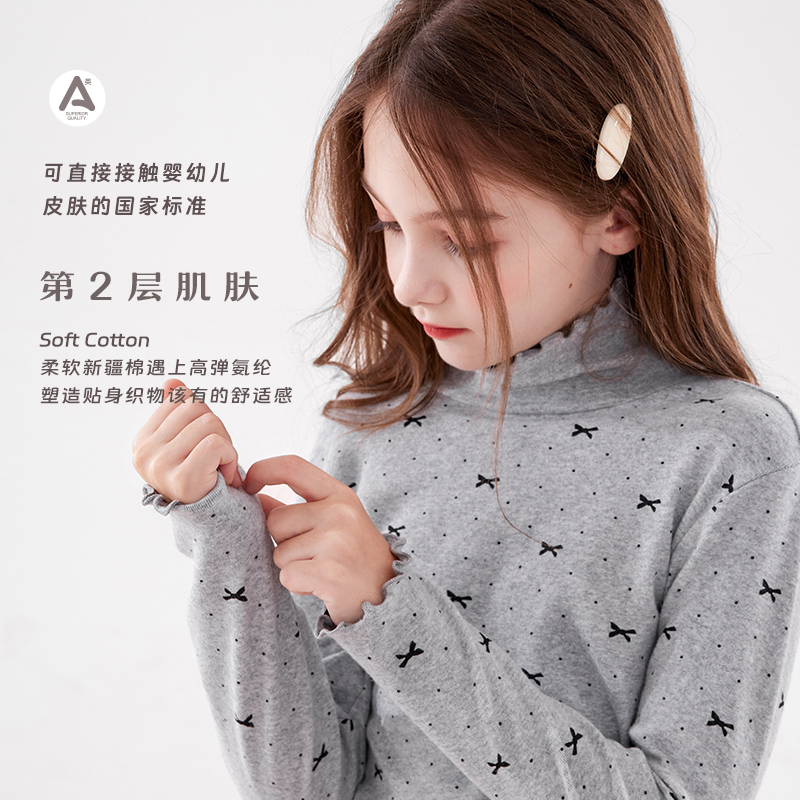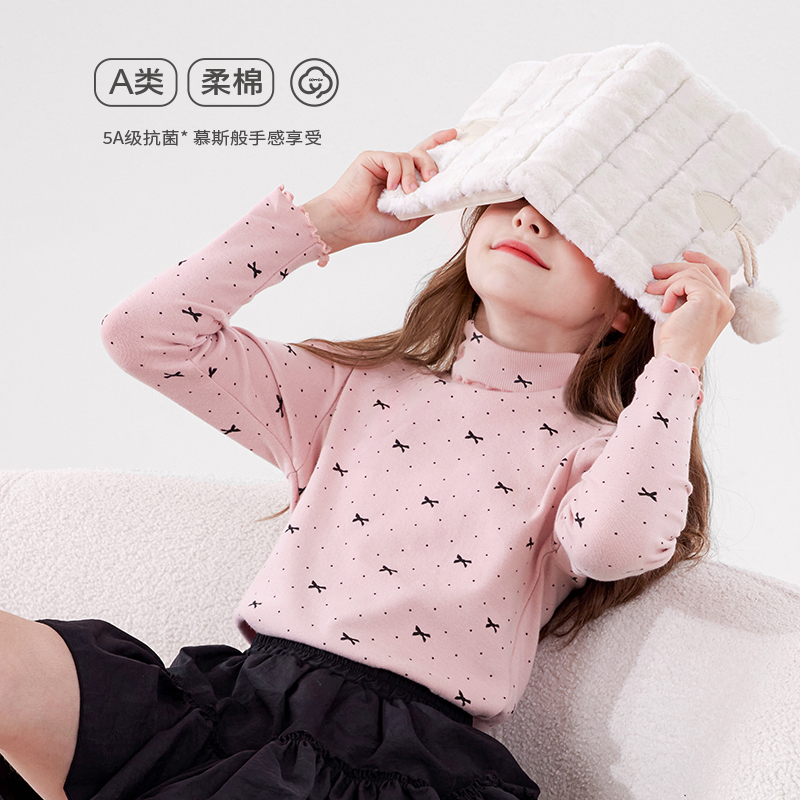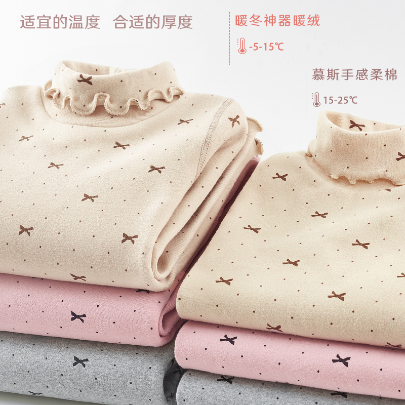 T恤高领加绒秋衣童装 儿童纯棉上衣中大童长袖 秋冬新款 女童打底衫