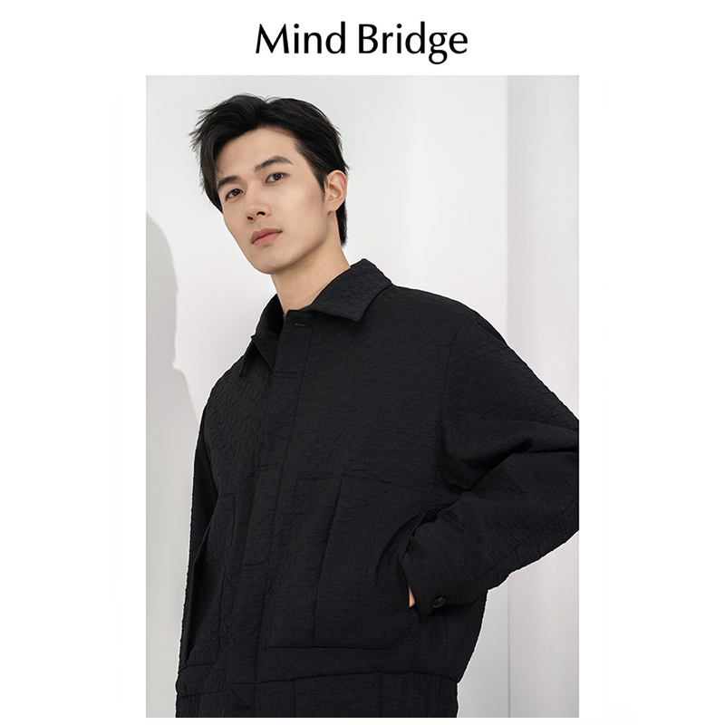 Mind 褶皱肌理高级感外套棉袄潮牌棉服 Bridge棉衣男2024秋冬薄款
