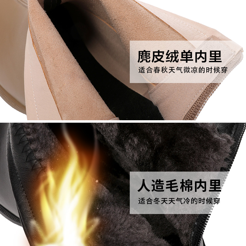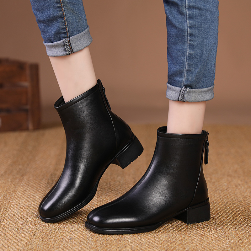大码 41一43软底胖脚宽肥加粗跟真皮冬单棉短靴2024 女靴马丁秋新款
