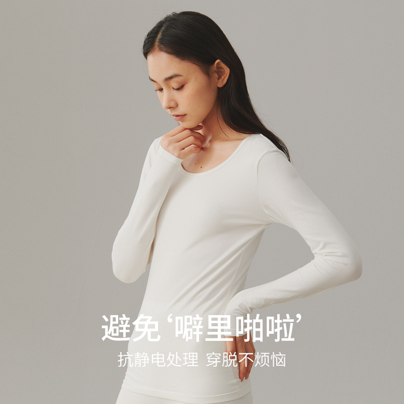 秋冬圆领长袖 棉毛衫 保暖打底衣冬 单件上衣2024新款 纯棉秋衣女薄款