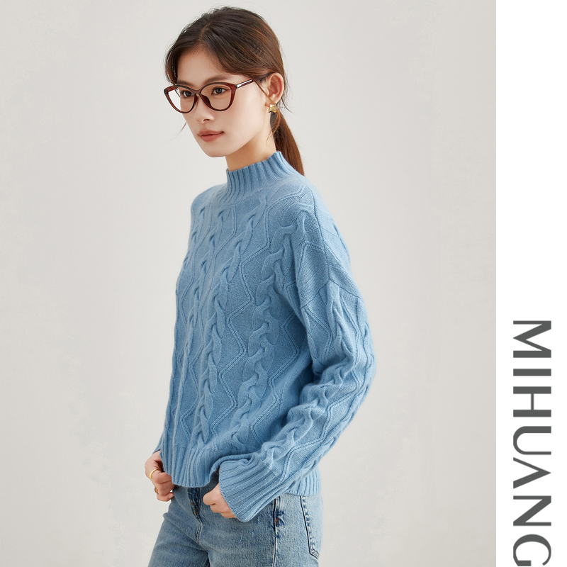 针织衫 米皇冬季 女休闲提花宽松厚款 半高领套头纯山羊绒衫 新款