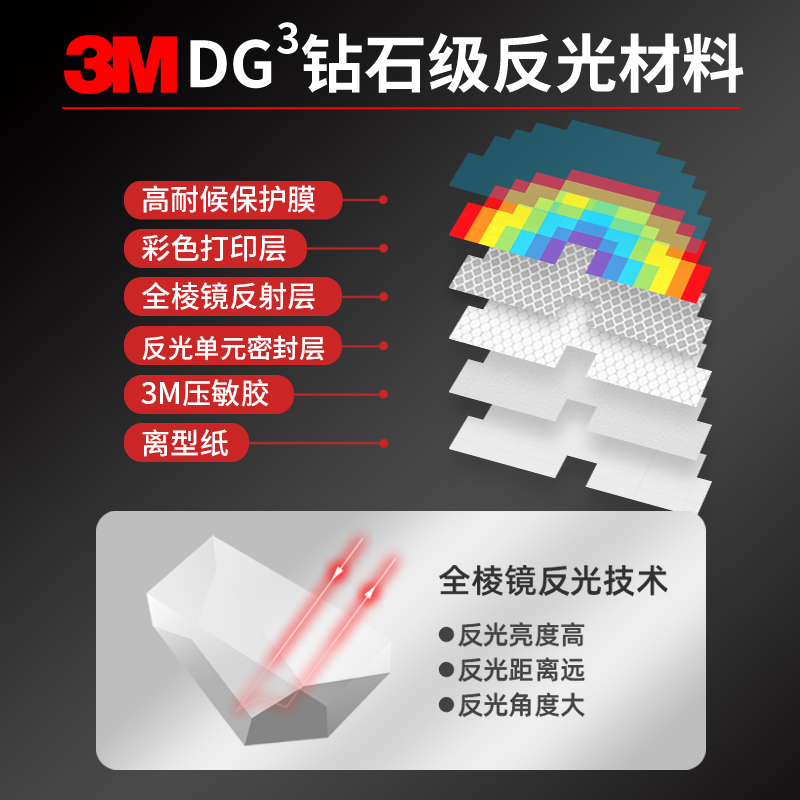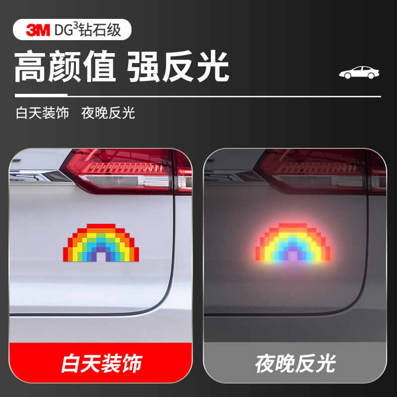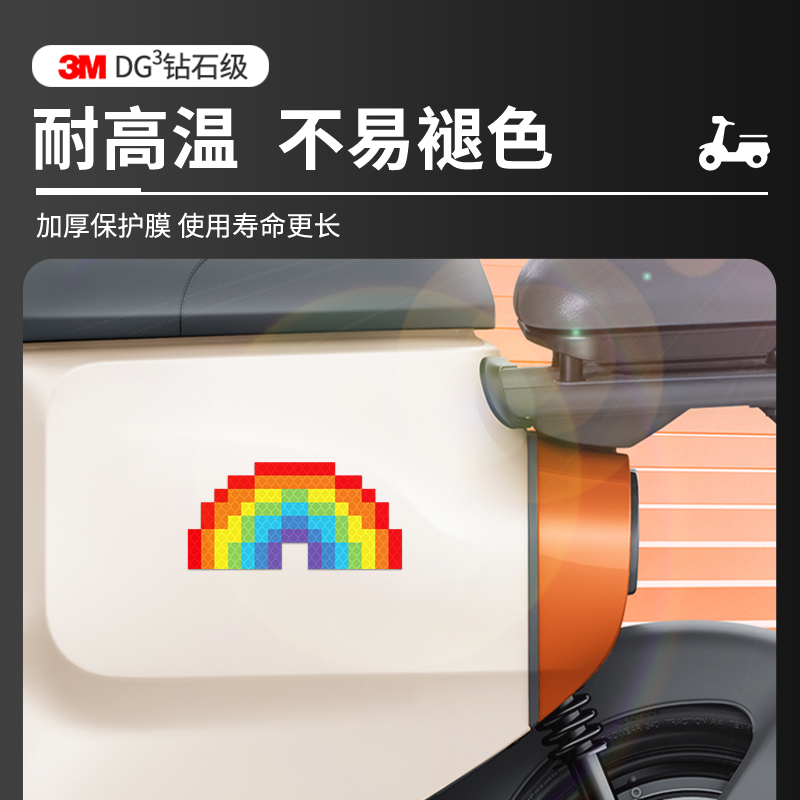 3m钻石级反光贴电动车创意车身贴彩虹图案安全强反光荧光警示贴纸