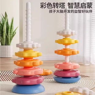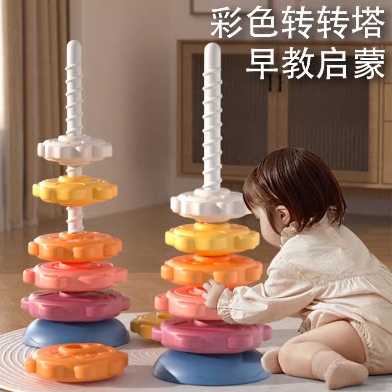 彩虹塔转转乐叠叠乐益智早教玩具1一3岁幼儿宝宝转转塔彩色套叠圈