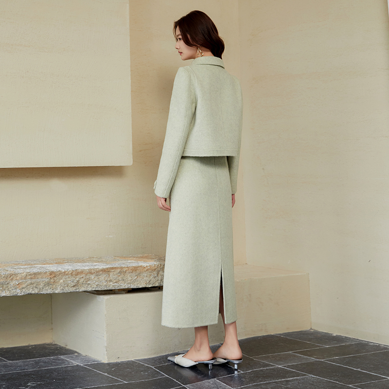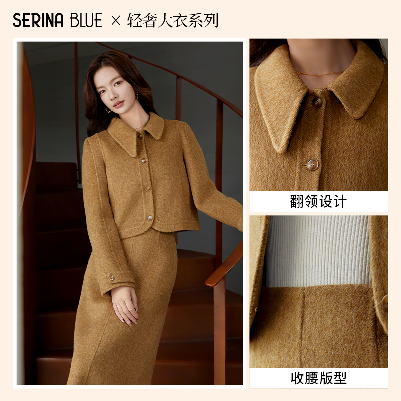 SeRinaBlue沙芮娜优雅风毛呢外套羊毛外套半裙连衣裙套装 秋冬新品