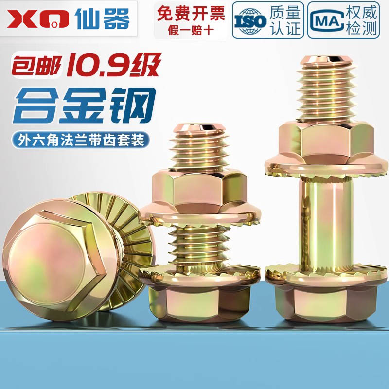 国标10.9级高强度法兰面螺丝螺母套装 外六角带垫螺栓M6M8M10M12mm