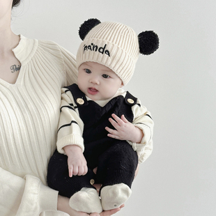 婴儿帽子秋冬款 宝宝小月龄毛线帽护耳帽婴幼儿可爱针织帽冬天加厚